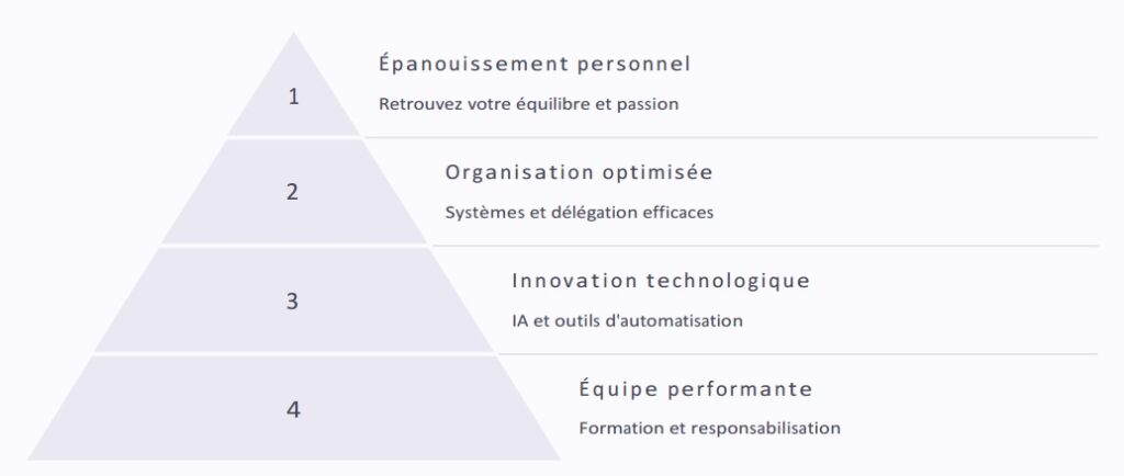 Le poids de la responsabilité peut s’alléger considérablement grâce à une combinaison d’outils technologiques, de systèmes efficaces et d’une équipe autonome. L’intelligence artificielle offre aujourd’hui des solutions pour automatiser les tâches répétitives et analyser rapidement de grandes quantités de données, vous permettant de vous concentrer sur la vision stratégique.